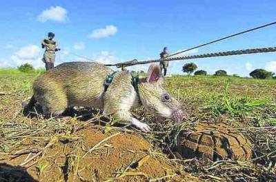 В Танзании дрессируют крыс местного крупного вида (длина тела крысы может достигать 45 сантиметров, плюс хвост такой же длины) на поиск динамита, тротила и других взрывчатых веществ. Крысы обладают более острым нюхом, чем собаки, и воспринимают поиск мин и бомб как увлекательную игру. В соседнем Мозамбике 12 дрессированных крыс используют для поиска мин, оставшихся в земле после гражданской войны. Хотя гигантская крыса может весить более полутора килограммов, мина на ее вес не срабатывает. Крысы бегут по полю и садятся около мин. Источник: http://www.bespoleznoe.info | |